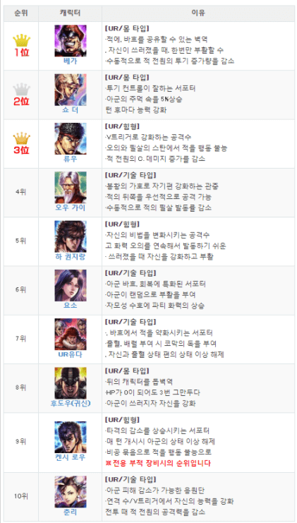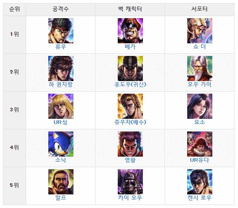 북두의권 등급표는 현재 한국에는 없는 캐릭터들이